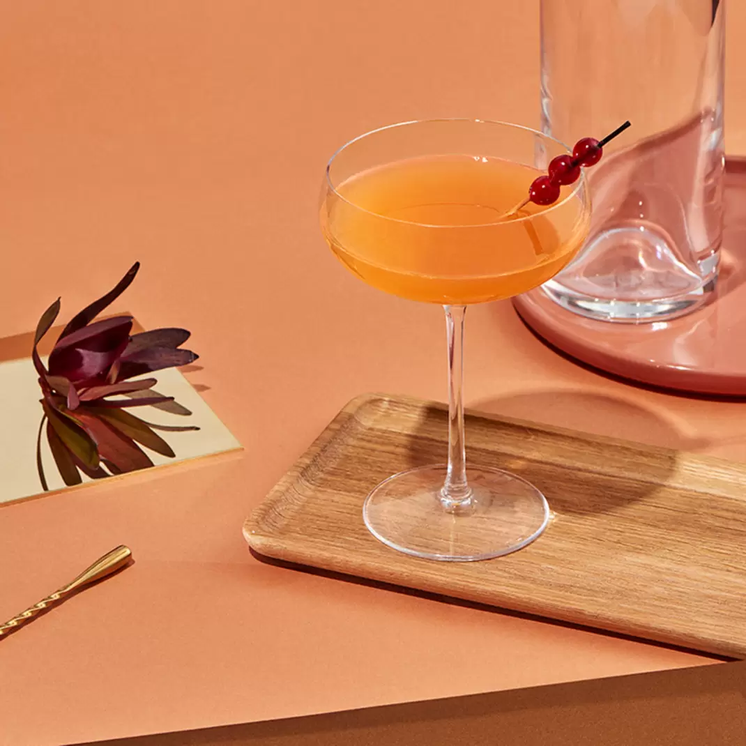 Fine strain into martini or coupe glass. Garnish with speared blueberry.