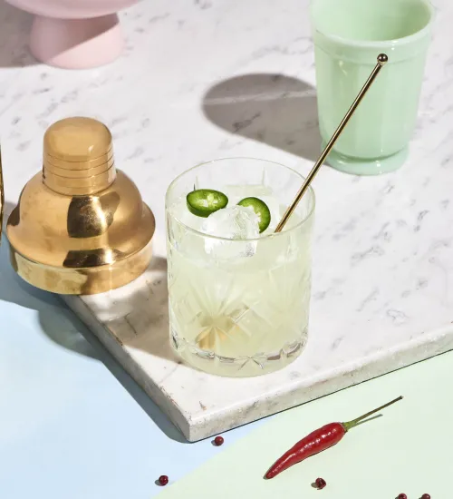 Bring a little heat to an iconic classic by adding jalapeno and cilantro to your Margarita. Your tastebuds may walk on fire, until the subtle sweetness of Cointreau washes over the flame.
