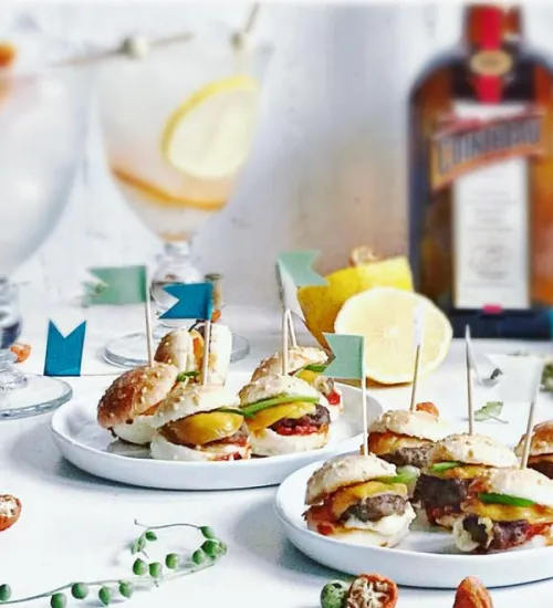 Brush the inside of the bun with ketchup and mayonnaise, add a slice of gherkin, the mini patty and a slide of cheese, then add the top half of the bun