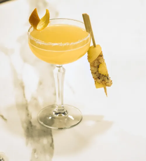 Dressage : servez une à deux brochettes par cocktail dans un petit récipient ou directement sur le dessus du verre.