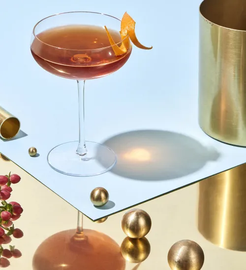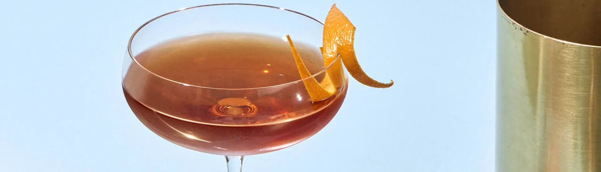 Garnish with an orange peel twisted over the drink