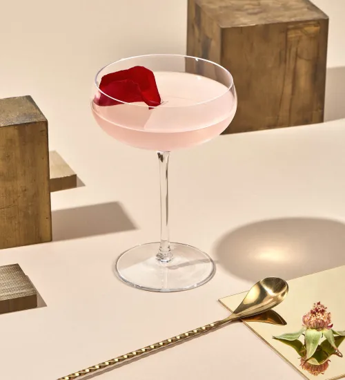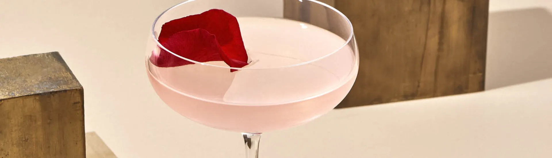 Garnish with a red rose petal.