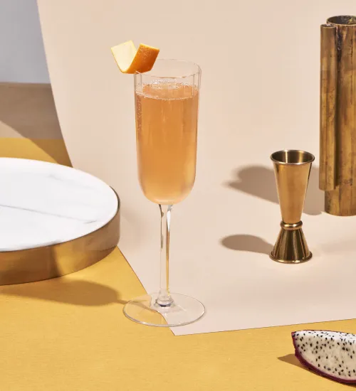 Stir and strain into a chilled Coupee and top with Champagne. -