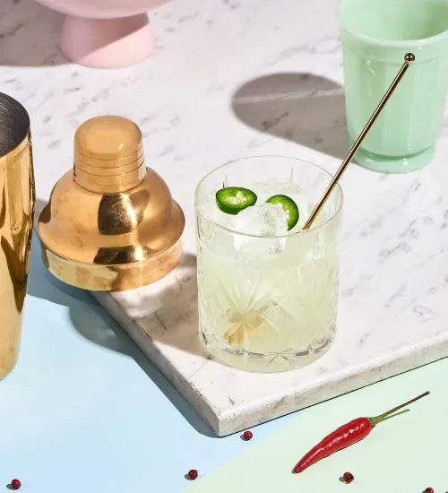 Bring a little heat to an iconic classic by adding jalapeno and cilantro to your Margarita. Your tastebuds may walk on fire, until the subtle sweetness of Cointreau washes over the flame.