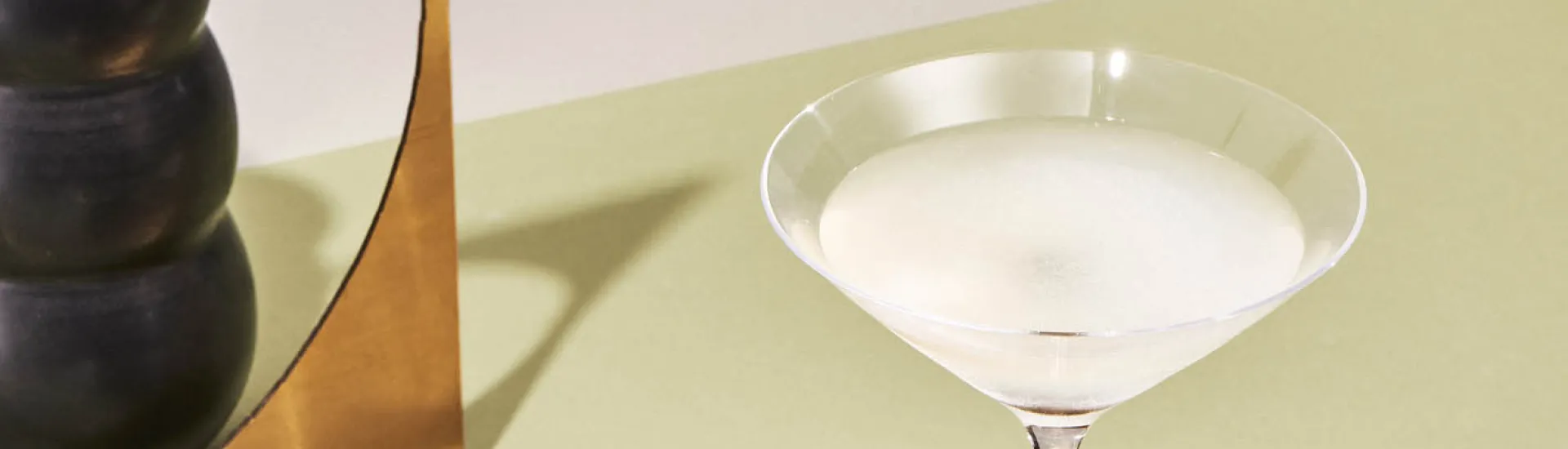 氷を加えて勢いよくシェイクし、冷やしたカクテルクープに濾しながら注ぐ -