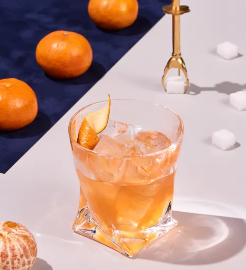 Garnish with an orange peel.