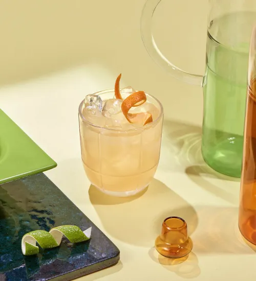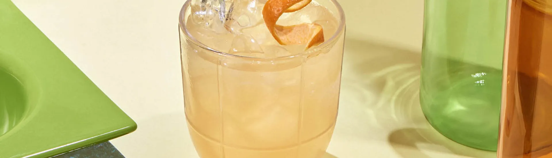 Strain over ice in a rocks glass. -